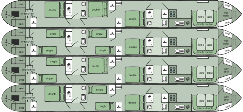 Aquatic Warbler - 6 + 2 Persons - Semi-traditional Stern - ABC Boat Hire