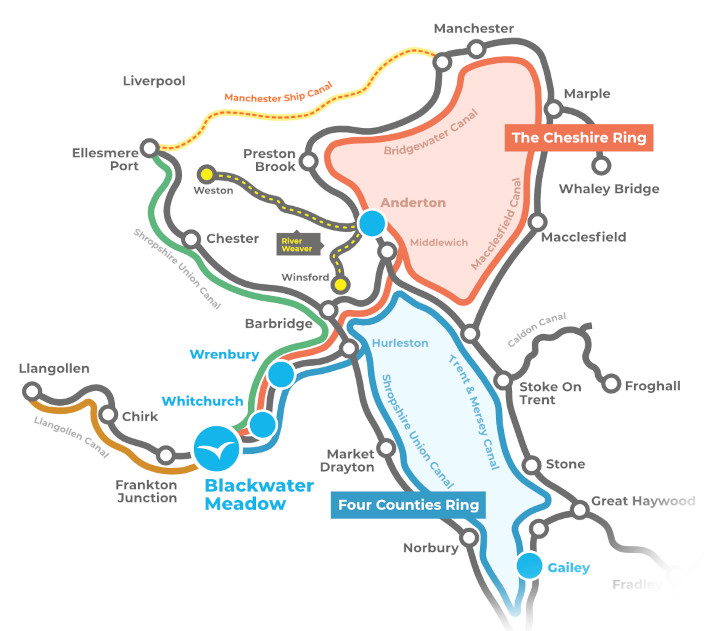 - Från Blackwater kan du att resa upp i Llangollen kanal, förbi våra baser i Whitchurch och Wrenbury för att ansluta till Shropshire Union Canal.