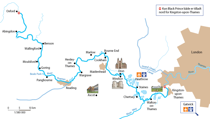 - Historiska engelska städer som Marlow, Cookham, Pangbourne och Datchet