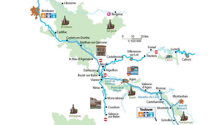 Le Canal de Garonne, Le Canal de Montech, Baïse-floden, Le Lot.