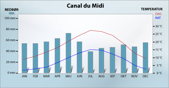 Kanalkartboken över Canal du Midi omfattar vattenvägen i det sydöstliga Frankrike från Toulouse till Beaucaire vid Rhône-flodens delta. Boken illustrerar områdets många akvedukter, broar, bassänger – några av dessa härstammar ända tillbaka till 1700-talet. Före slutet på kanalen kommer man till den lilla insjön Etang Thau som kan vara påverkad av Mistralvinden. Kanalkartboken innehåller goda råd vid infärd till marinor och färden är markerad med bojar. Boken slutar med en karta över Rhône-deltat – en region känd för sitt fina fågelliv och för ornitologer är området ett must-see. För att hjälpa dig med din ruttplan innehåller kanalkartboken också en distans- och tidtabell samt en översikt över antal slussar mellan de olika städerna på vattenvägen. Dessutom innehåller boken många nyttiga upplysningar för båtfärd i södra Frankrike t.ex. slussarnas öppettider, signaler, hastighetsbegränsningar, nyttiga adresser och telefonnummer till turistkontoret, marknadsdagar, museum med mera samt en massa praktiska upplysningar för en resa på dessa vattenvägar. Det är en längre historisk berättelse om hela bakgrunden för upprättningen av Canal du Midi och om kanalens berömda arkitektur. Dessutom hittar du detaljerade utvalda kanalavsnitt, samt en turistbeskrivning på engelska, tyska och franska. Kanalkartboken är rikt illustrerad med foton av kanalerna, turistmål med mera. Boken finns ombord på båten men riktigt många beställer den på förhand som förberedelse av båtsemestern och för att ha den som en klippbok till minne av båtsemestern.