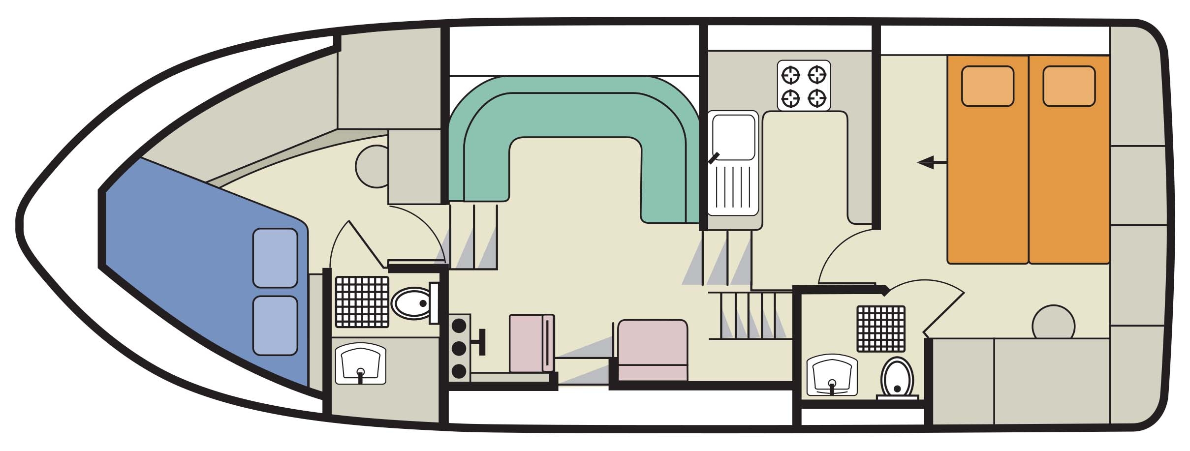 En Clipper kanalbåt kan ta emot sällskap på sex personer. Hytterna finns i fören och aktern för ökad integritet, och de har eget badrum. Salongen har radio/CD-spelare och MP3/USB-anslutning. Gott om fönster håller interiören ljus och munter!
